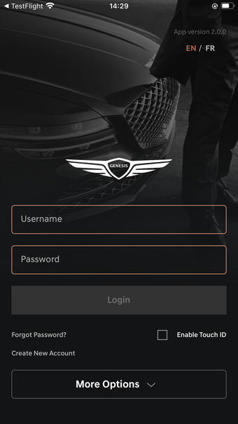 Appen använder Genesis Connected Services-teknologi för att möjliggöra smidig åtkomst till bilens funktioner. Användare kan logga in med sin e-postadress, lösenord och PIN-kod, eller använda biometrisk autentisering för att snabbt skicka kommandon. För att använda appens funktioner krävs en aktiv prenumeration på Genesis Connected Services. Observera att tillgång till vissa funktioner kan variera beroende på bilmodell och att det är viktigt att använda tjänsterna i en säker miljö.
